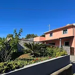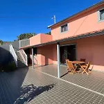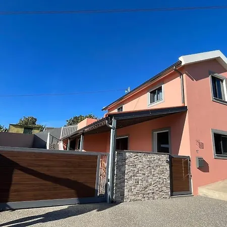 Pink House Villa, som ligger cirka 25 minuters promenad från Madeira Paragliding, har en terrass med utsikt över trädgården.